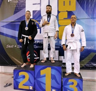 Richard on top of the #1 podium after a Brazilian Jujitsu tournament.